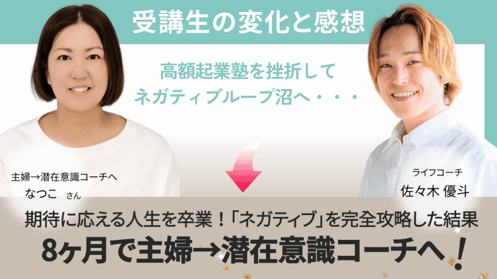 「ネガティブな感情を完全に攻略できました!」8ヶ月で主婦→潜在意識コーチへ!なつこさんインタビュー